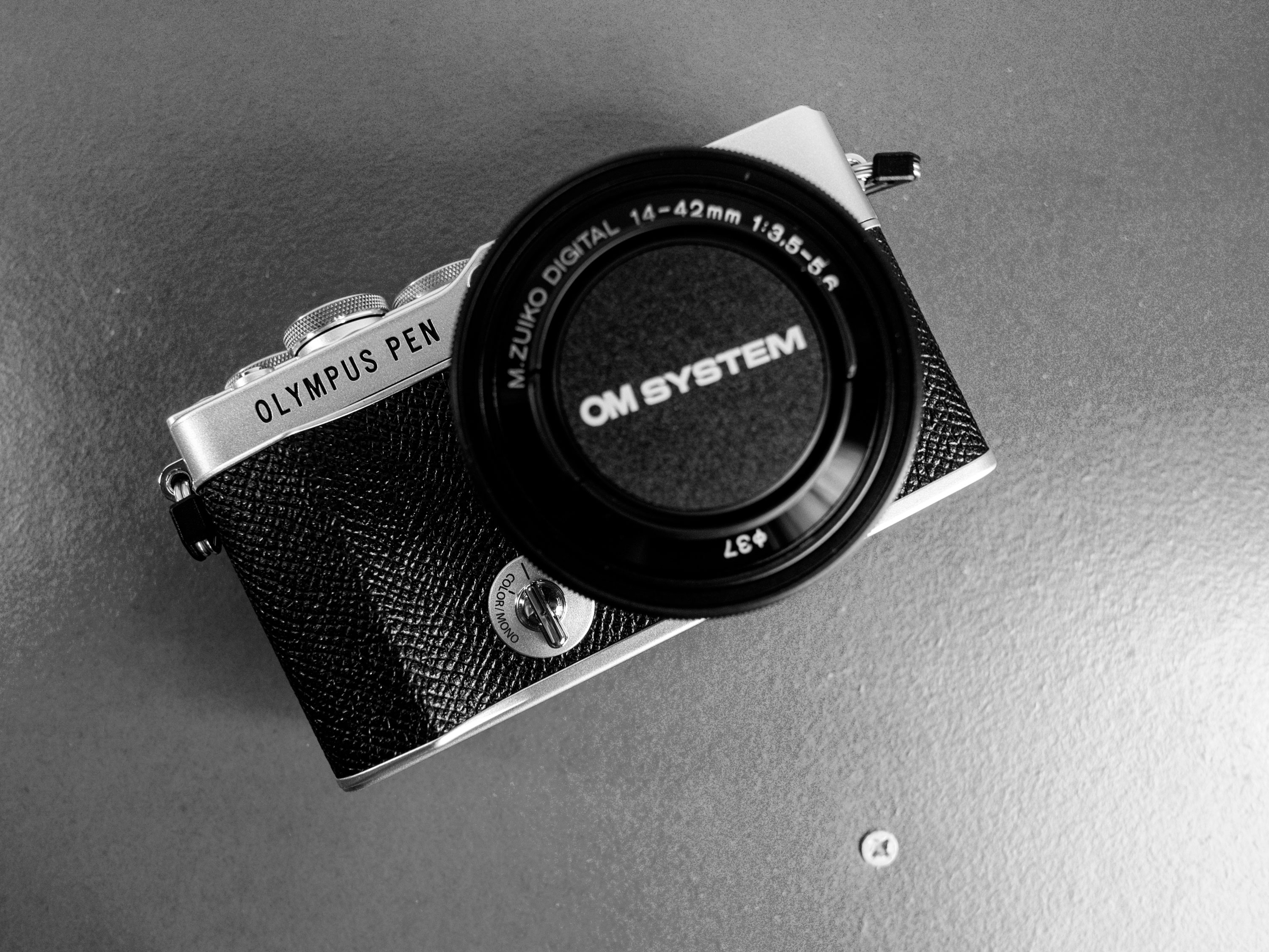 Dalam paket penjualan disertakan lensa kit 14-42 EZ. Itu lensa yang bagus, hanya tak akan pernah saya pakai. Btw tutup lensa dan tutup bodinya sudah logo OM System, padahal branding kamera ini masih Olympus.